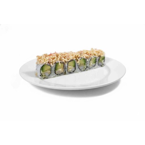 Tempura shrimp, avocado, spicy crab top, mango sauce